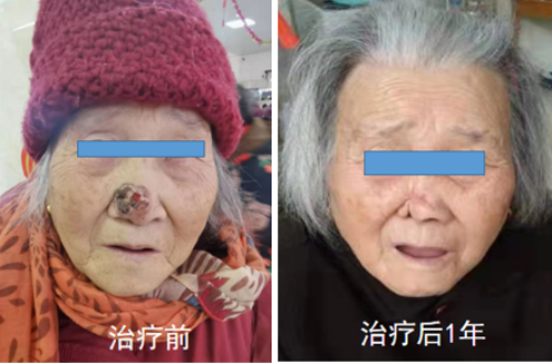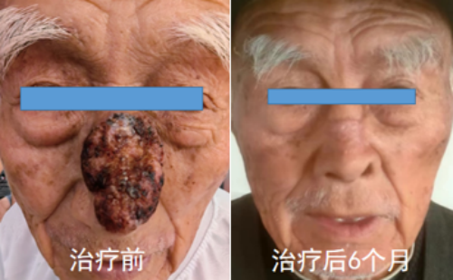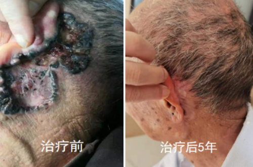 随着 “宁式小球” 在良性疾病治疗中的广泛应用,其 “损伤小、易操作、疗效确切” 的优势日益凸显,也激发了宁永球扩大应用范围的思考。当面对头面部恶性肿瘤、黑色素瘤等被传统临床判定为 “难治” 甚至 “无治” 的患者时,他决定突破 “良性疾病治疗” 的局限,大胆尝试用这一方法开展治疗 —— 这一尝试,竟实现了 “有意栽花花不开,无意插柳柳成荫” 的重大突破。