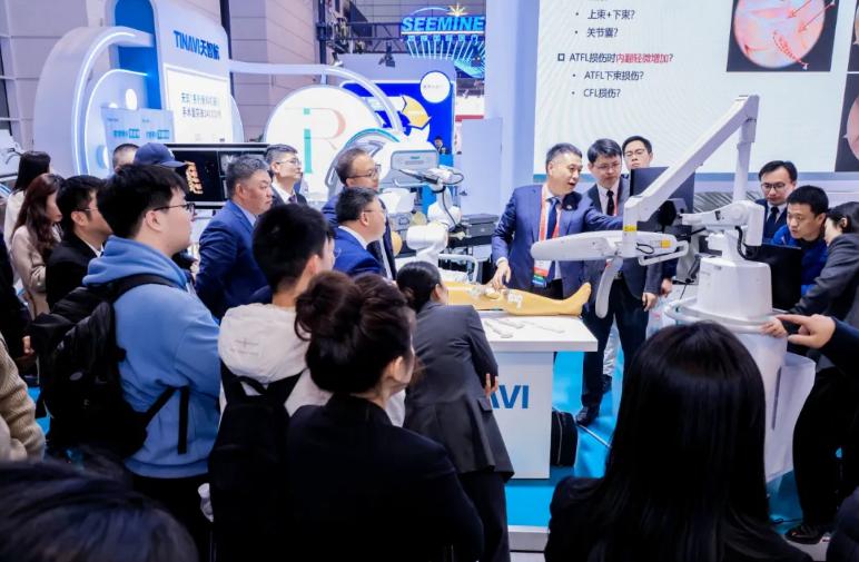 在为期两天半的展期内,举办了多场天玑机器人辅助骨科手术实操讲解。中国医科大学附属第一医院丛琳教授进行了天玑辅助脊柱手术演示与讲解,首都医科大学附属北京积水潭医院杨德金教授和中国人民解放军总医院倪明教授进行了天玑骨科机器人辅助TKA实操讲解,首都医科大学附属北京积水潭医院唐浩教授全流程演示机器人辅助THA,现场人气爆棚,每场讲解都吸引了众多对智能骨科前沿技术抱有浓厚兴趣的观众。