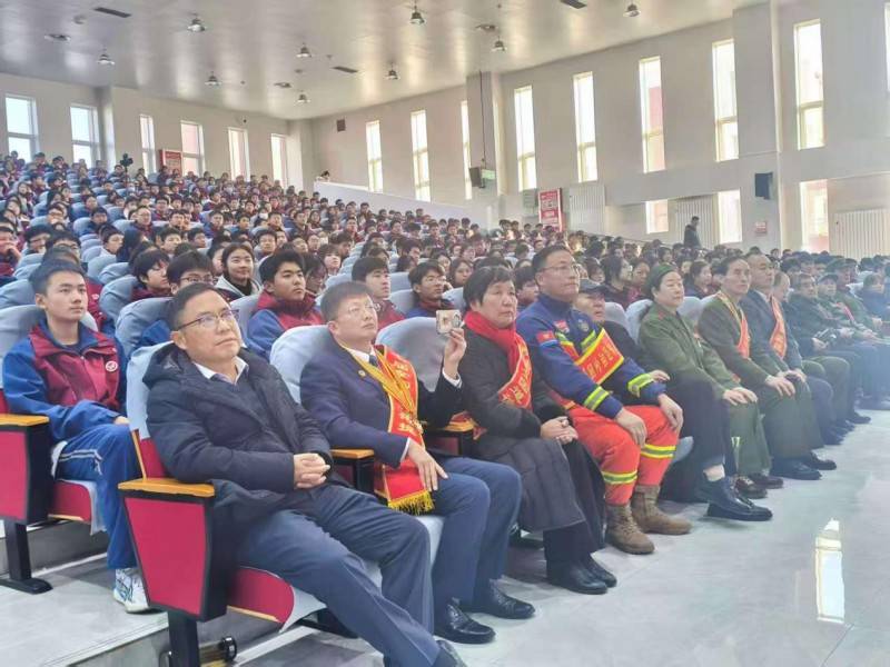 (全国英模先进事迹宣讲团邢纪国为陕西师范大学吴忠学校学生做励志报告)