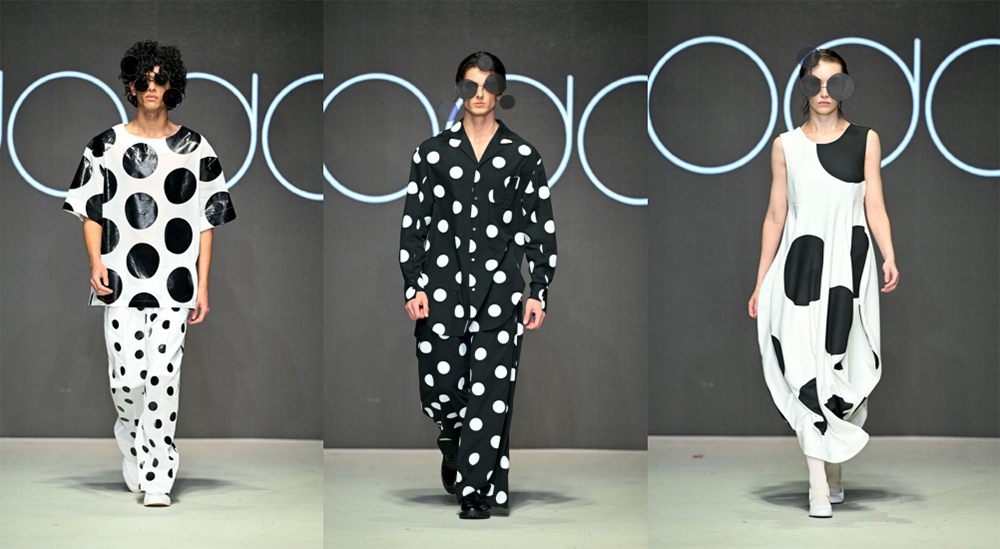 Dodot 在温哥华时装周上以其创新的系列作品惊艳全场。灵感源于“do dot”的主题,系列以独特的方式重新诠释了点状图案的魅力,将其与人类情感深刻联结。设计以点状图案为核心特色,包括带有洞状点图案的夹克与裤装,以及多层点设计。同时,不同尺寸的点图案被巧妙运用在同一面料中,形成了极具视觉冲击力的组合。点状时尚的历史可以追溯到史前时代,当时人们用颜料装饰身体。Dodot 系列以现代设计语言生动展现了这一深厚文化背景,赋予点状元素全新意义,成为时尚与历史对话的绝佳体现。