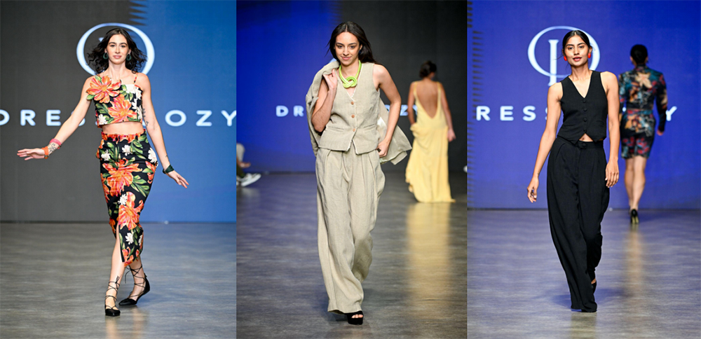 Dress Cozy 的“定制奢华”系列以天然面料和手工细节为亮点,展现柔美与优雅。亚麻与棉质面料结合编织肩带与露背设计,彰显女性魅力。柔和的粉彩与深茄紫色调,搭配沙色与米白,构成和谐配色。系列通过利落的定制套装与飘逸连衣裙,融合结构与流动感,传递精致与优雅的时尚理念。