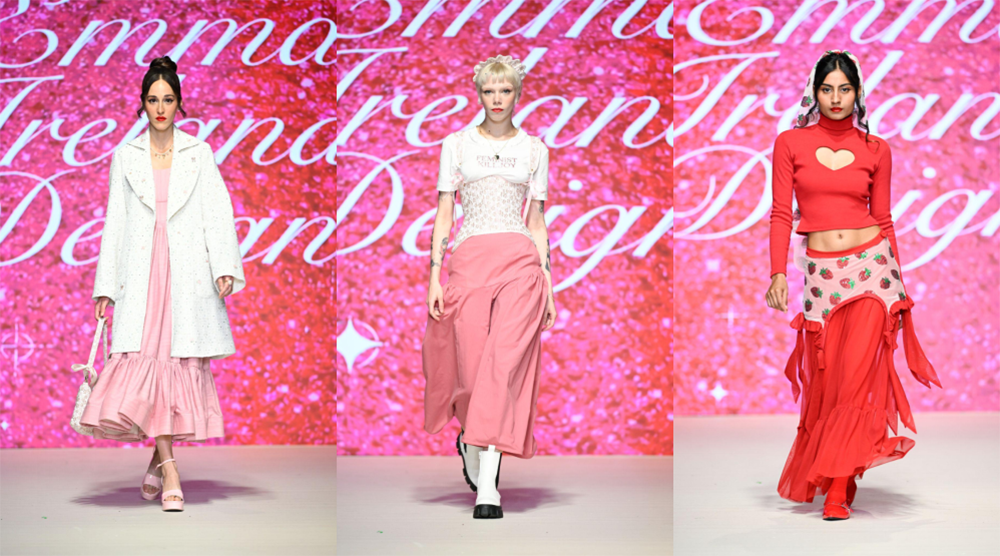 Emma Ireland 在温哥华时装周上以“女孩时代的情书”系列惊艳全场,展现出大胆、自信且充满个性的女性魅力。系列以温暖的粉色与樱桃红为主调,辅以俏皮的褶饰与蝴蝶结,搭配手工手套与独特帽饰,完美诠释了女性力量与童年的纯真。Emma Ireland 鼓励女性大胆表达自我,拥抱自信,以其精湛工艺与鲜明风格,庆祝女性经验与独特身份。