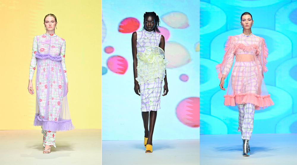在温哥华时装周上,HAZI HAUS的“Juvenescence Thalia”系列以赋权女性、打破社会束缚的主题震撼观众,鼓励女孩拥抱真实自我并自由表达。设计师Lexi Chang以大胆的色彩与活泼的材质营造出无忧无虑的梦幻氛围,巧妙融合柔和的粉彩、花卉图案和丰富的纹理,呈现出和谐的艺术之美。
