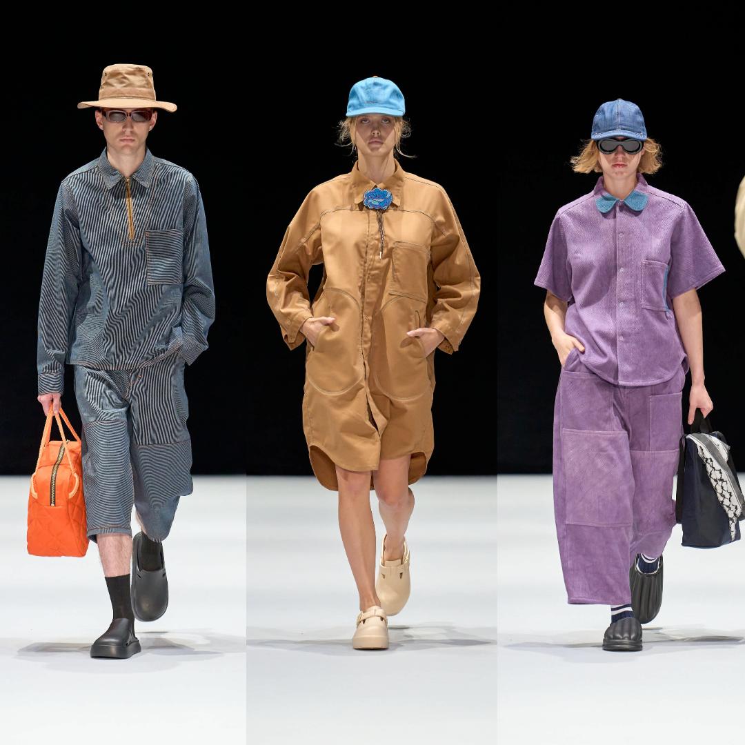 Cassandra Bailey 在东京乐天时装周 SS25 上以她的品牌 OLD FASHIONED STANDARDS 吸引了众多观众,重新定义了现代工装服的复古风格。秀场上,精心制作的单品生动展示了 Bailey 如何巧妙融合窄幅丹宁布、蜡棉和再生材料。每件服装在结构与舒适间达到了完美平衡,并以复杂的彩色缝线和鲜艳的点缀为经典廓形注入了新活力。系列包含多种独特剪裁和大胆印花的成套搭配,巧妙结合了贴身与宽松的风格。