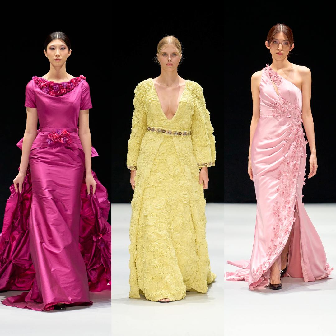 Tess Mann Atelier 在东京乐天时装周 SS25 上呈现了优雅与复古气息融合的系列,展示了女性化、精致与复古的魅力。该系列采用优雅的剪影、独特的袖子设计和精致的领口装饰,吸引了观众的目光。刺绣是该系列的核心元素,手工细节提升了每件作品的工艺水平。色彩柔和,以粉红、红色、淡紫和绿、粉等柔和色调为主,完美展现了现代女性的优雅与自信。作为一名享誉国际的设计师,Tess Mann 此次在乐天时装周展示了她不断突破创新的设计风格,为女性赋予了全新魅力。