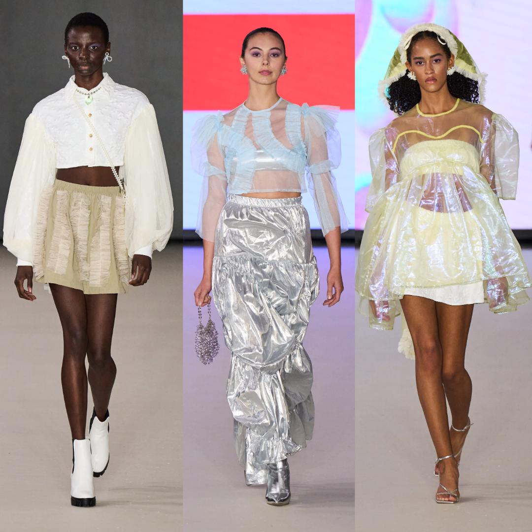 Mahaud Paris 由设计师 Mathilde Covelli 在纽约时装周上推出了充满活力的可持续时尚系列。系列采用废弃的袜子和裤袜作为材料,搭配春夏灵感的花卉元素,既环保又时尚。明亮的色彩和独特的轮廓展示了 Covelli 对环保的承诺和对高端设计的追求。Mahaud Paris 的作品不仅仅是时尚,更是一种倡导可持续未来的时尚运动,传达出对自然世界的热爱。