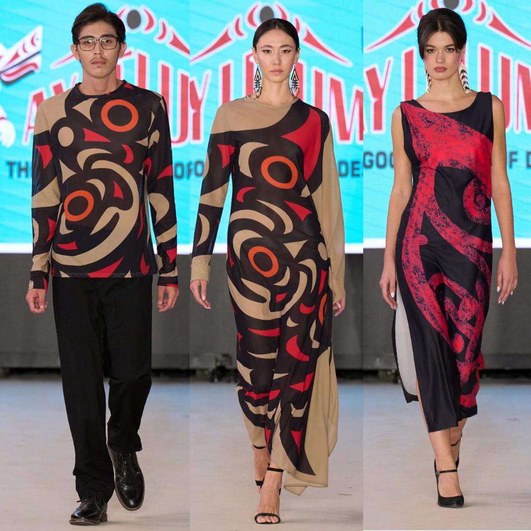 Ay Lelum,来自加拿大不列颠哥伦比亚省的第二代海岸萨利希设计品牌,在纽约时装周上以其充满情感的作品致敬了其文化遗产。该品牌由姐妹共同创立,将由父亲和兄弟创作的传统海岸萨利希艺术融入现代设计。系列作品运用明亮的色彩和独特的印花,讲述了他们对多样性和文化传承的热爱。Ay Lelum 的展示不仅突显了其对环境责任的承诺,也巩固了其在当代时尚中的先锋地位。