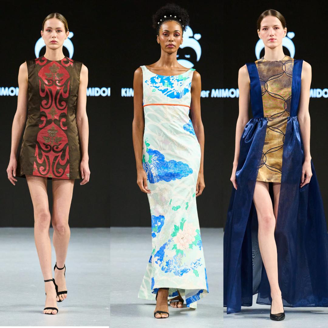 Kimono Dress Midori 在米兰时装秀上推出了以“波浪”为主题的系列,将日本传统艺术与现代优雅完美结合。系列作品全部使用再生和服面料制作,展现了设计师对可持续时尚的承诺。受日本浮世绘“波浪”画作的启发,设计运用了柔和的丝绸和艳丽的色彩,呈现出水的流动之美。Kimono Dress Midori 的作品不仅传递了日本文化之美,也将传统艺术转化为现代舞台上的艺术表达。