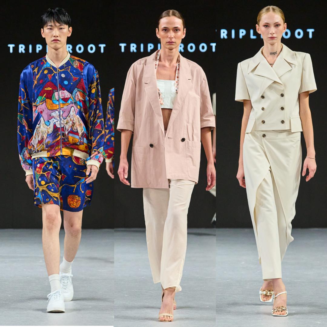 来自韩国的 TRIPLEROOT 在米兰时装秀上首次亮相,展示了其精致与现代艺术结合的 SS25 系列。该品牌以“当代浪漫经典”为主题,与艺术家 Yun SongA 合作,通过现场绘画将时装展示提升为沉浸式体验。系列以极简优雅与大胆抽象印花相结合,为现代女性带来了新视角,展现了 TRIPLEROOT 对创新设计和个性表达的承诺,成为时尚界的重要力量。