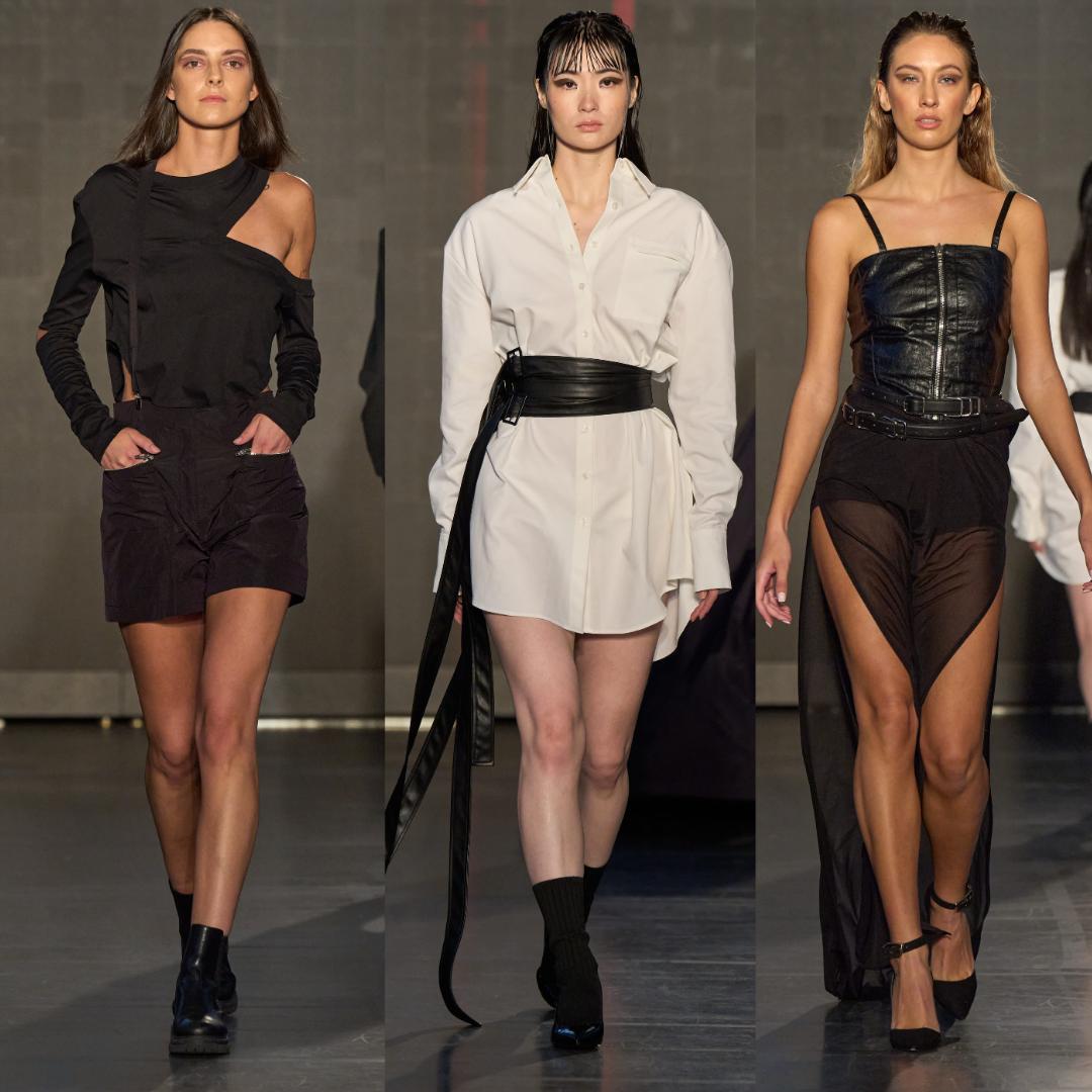 FRONT 11201 在东京乐天时装周 SS25 上带来了“Rede(fine) Line”系列,以可持续时尚与现代设计为主题。该系列以中性色调、回收材料和极简而创新的美学为特色,主要单品包括多功能的中性连身裤和夹克与裤装套装,均采用天然和未染色的材料,强调品牌对环保的承诺。系列还与 Vibram 和 Guepard 等知名品牌合作,为复古军靴带来全新 Vibram 鞋底,并引入法式灵感的时尚眼镜,增添了现代感。现场还配有萨克斯演奏和多才艺艺术家的表演,呈现出纽约街头的多元文化氛围。